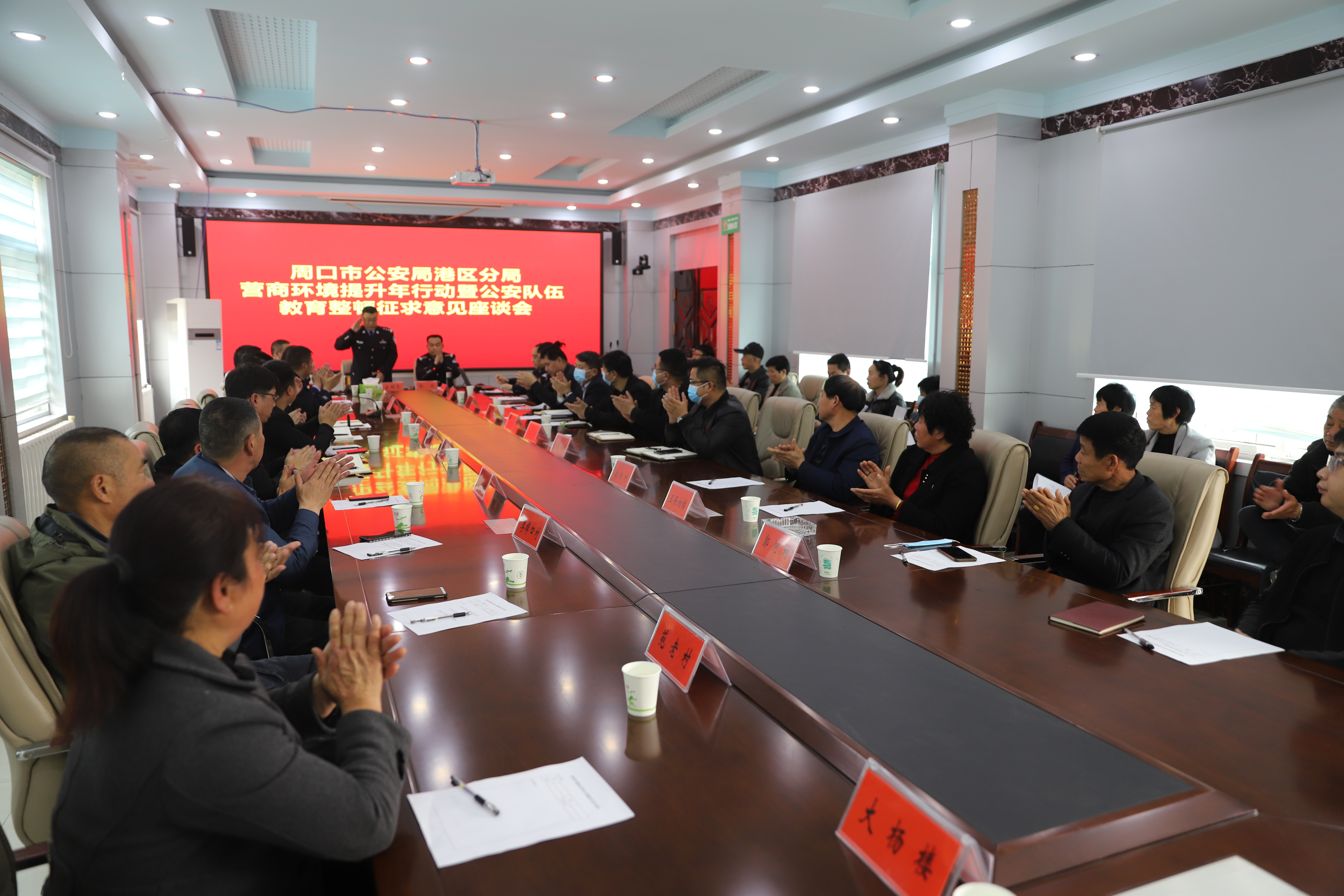 康群泉詳細(xì)介紹了分局為臨港經(jīng)濟(jì)發(fā)展提供保障和服務(wù)的12項新舉措,并誠懇邀請各企業(yè)代表結(jié)合自身工作與行業(yè)實際,對港區(qū)公安工作多提寶貴意見和建議,助力公安機(jī)關(guān)更好地發(fā)揮職能作用,為企業(yè)發(fā)展?fàn)I造穩(wěn)定的社會環(huán)境、安全的治安環(huán)境、優(yōu)質(zhì)的服務(wù)環(huán)境。與會人員結(jié)合企業(yè)經(jīng)營性質(zhì)和行業(yè)特點,暢談了當(dāng)前治安環(huán)境、營商環(huán)境的巨大變化,充分肯定了港區(qū)公安維護(hù)安全穩(wěn)定作出的貢獻(xiàn),貼近實際地講了一些關(guān)于基礎(chǔ)設(shè)施、交通管理、周邊環(huán)境方面的問題、不足,并提出了對公安機(jī)關(guān)進(jìn)一步服務(wù)民營企業(yè)發(fā)展的期望。