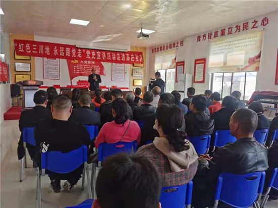 3月25日下午,川匯區(qū)“紅色三川地 永遠(yuǎn)跟黨走”黨史宣講活動(dòng)走進(jìn)小橋街道辦事處高莊社區(qū),社區(qū)宣講團(tuán)成員范云峰作主題宣講。