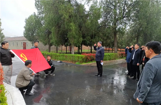 在五七干校舊址,大家通過觀看館內(nèi)大量留存的圖片、文字、實物等珍貴資料,再現(xiàn)了老一輩黨員干部在困境中堅持服務(wù)基層、服務(wù)百姓的感人場景,受到了一次鮮活的革命傳統(tǒng)教育和精神洗禮。紛紛為“五七”干校干部職工身處逆境樂觀向上、艱苦奮斗的精神點贊。隨后,在鮮紅的黨旗下,大家莊嚴(yán)地舉起右拳,重溫了入黨誓詞。