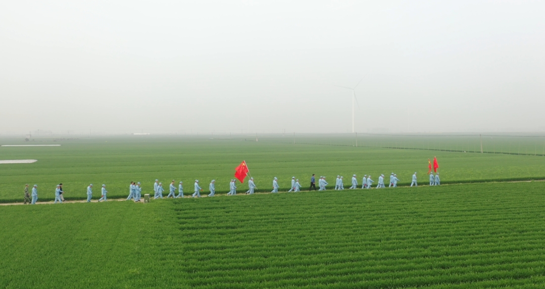 行軍途中,大家兩兩對齊,步伐堅(jiān)定一致,口號嘹亮,無不展示出奉母鎮(zhèn)新時(shí)代基層干部的精神面貌,引來過往群眾的圍觀和贊賞。