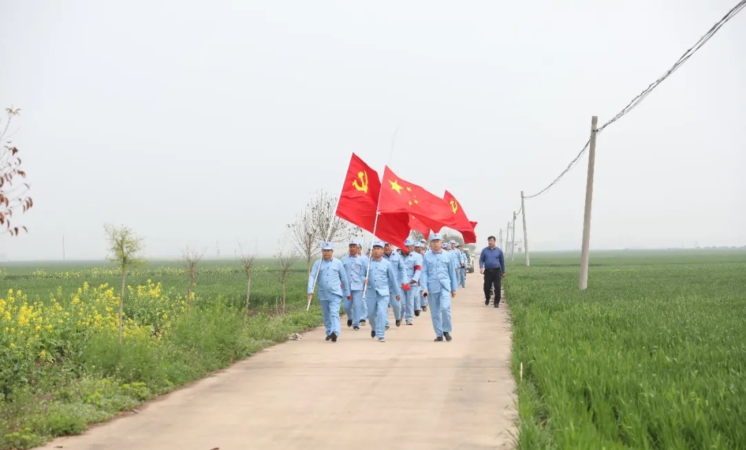 “我一定要跟著大部隊(duì)走,絕不掉隊(duì),不給紅軍前輩抹黑。”剛剛做完手術(shù)的七一村黨支部書記何治安斬釘截鐵地說。在七二村,熱情好客的七里倉群眾不僅給“大軍”送來了西紅柿、黃瓜、茶雞蛋、香蕉等補(bǔ)給品,還表演了“祖國你好”、“美麗生活”等扇子舞,再現(xiàn)了當(dāng)年紅軍到哪都受人民群眾擁戴的情景,同志們的疲憊一下子煙消霧散.....按照拓展行程安排,在盆李村的“周口市第一個(gè)農(nóng)村黨支部舊址”,同志們進(jìn)行了參觀瞻仰和重溫入黨誓詞等活動,回顧了歷史,緬懷了先烈,震撼了心靈,錘煉了黨性。