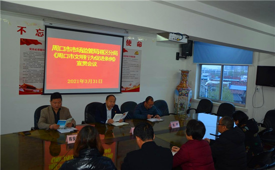 3月31日,周口市市場監(jiān)督管理局港區(qū)分局召開《周口市文明行為促進條例》宣貫會議。局長崔健就如何學(xué)習(xí)、遵守、貫徹、宣傳好《周口市文明行為促進條例》向全局同志提出具體要求。