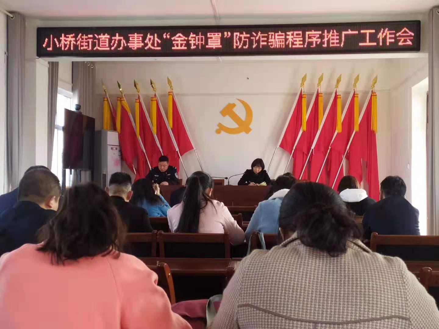 堅持黨建引領(lǐng),高起點安排部署。辦事處堅持以黨建統(tǒng)領(lǐng)為中心,第一時間成立了防范詐騙宣傳工作領(lǐng)導(dǎo)小組,立即召開了全辦推廣“金鐘罩”程序?qū)n}會,安排部署宣傳推廣工作。同時,每周召開“金鐘罩”放詐騙程序推廣小結(jié)會,對各社區(qū)推廣注冊人數(shù)情況進行日督查周統(tǒng)計通報,對落后社區(qū)進行通報批評。堅持四級聯(lián)動,高規(guī)格落實責(zé)任。辦事處將下轄9個社區(qū)根據(jù)實際情況劃分為30個網(wǎng)格,形成了“科級干部—派出所民警—社區(qū)干部—志愿者服務(wù)隊”四位一體的小橋辦“金鐘罩”防詐騙推廣小組,由綜治中心牽頭搭線,各社區(qū)干部、黨員志愿者和轄區(qū)派出所民警結(jié)成宣傳對子,挨家挨戶上門宣傳,夯實責(zé)任,主動出擊,形成合力,成效明顯。
