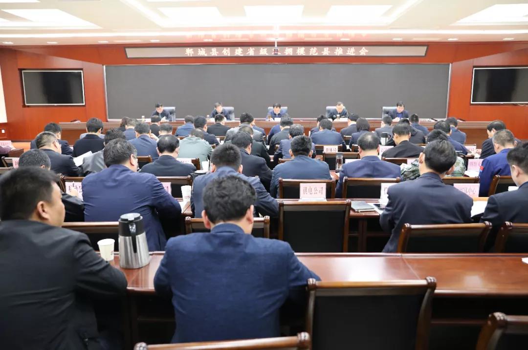 金仁旺宣讀了《鄲城縣創(chuàng)建省級雙擁模范縣實施方案》。張仁杰就做好創(chuàng)建省級雙擁模范縣工作進行了具體安排部署。