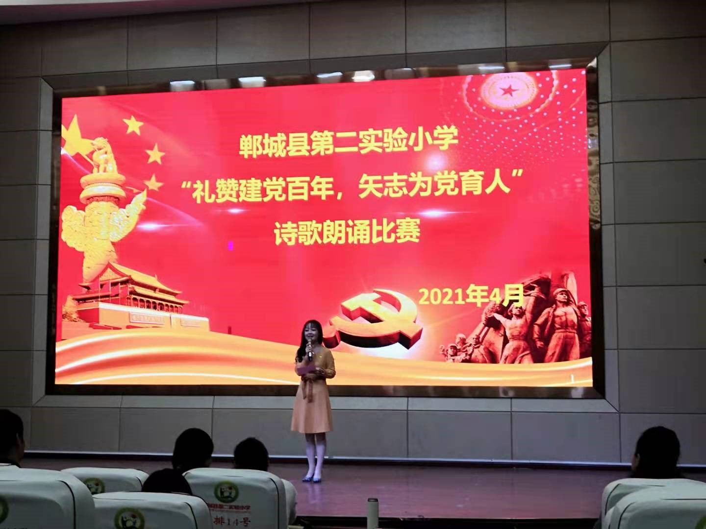 4月14日,鄲城縣第二實(shí)驗(yàn)小學(xué)舉行關(guān)于“百年榮光·每個人都了不起”系列主題活動——獻(xiàn)禮建黨100周年詩歌朗誦比賽。26位教師分10支代表隊(duì)參賽。