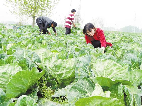 4月14日,沈丘縣周營(yíng)鎮(zhèn)黃孟營(yíng)村的一處生態(tài)蔬菜種植基地,村民正在收獲訂單甘藍(lán)。近年來(lái),該鎮(zhèn)通過(guò)政策扶持,鼓勵(lì)群眾因地制宜規(guī)模有序發(fā)展特色蔬菜種植,采取“基地+合作社+農(nóng)戶”的種植模式,促進(jìn)農(nóng)業(yè)增效、農(nóng)民增收,助力鄉(xiāng)村振興。