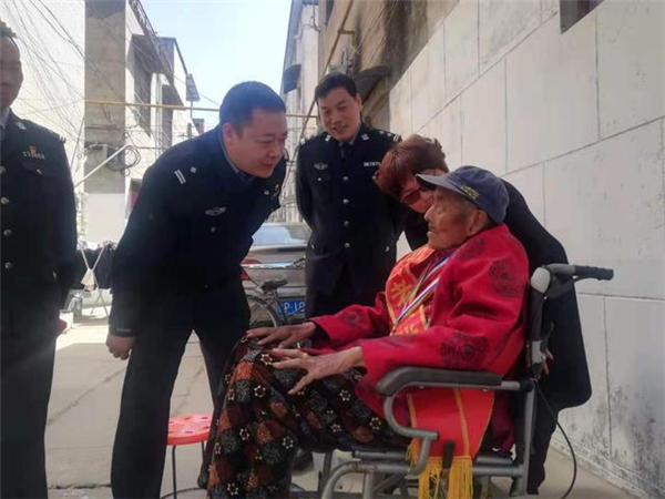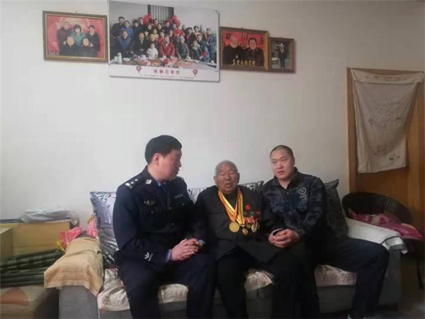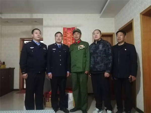 一大早,該所黨員民警身著戎裝,排著整齊的隊(duì)伍,分別前往荷花路派出所轄區(qū)的閆莊社區(qū)、荷花社區(qū)、前王營(yíng)等社區(qū),探望慰問年逾花甲的抗戰(zhàn)老英雄,聆聽他們?cè)诳箵羟致缘膽?zhàn)斗歲月里浴血奮戰(zhàn)、不屈不撓的感人故事。在戰(zhàn)斗英雄尤洪亮家中,民警深切感受了那場(chǎng)保家衛(wèi)國(guó)反擊戰(zhàn)的慘烈,看到了新時(shí)代最可愛的人。