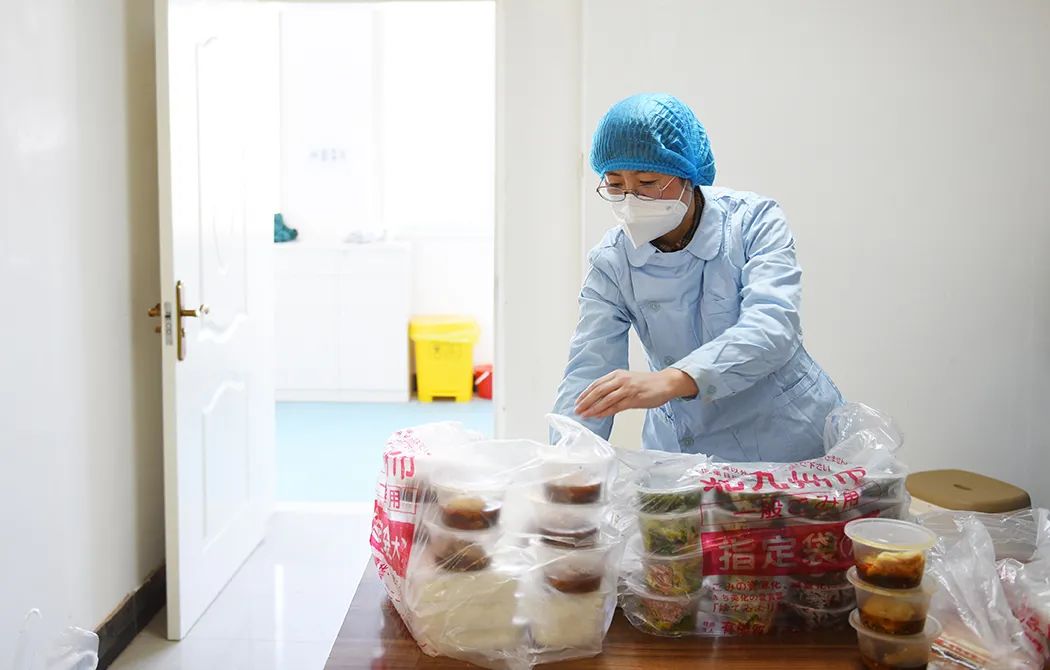 “韓某對銀耳過敏,醫(yī)院內(nèi)餐部做的巧碗里有銀耳,絕對不能給她吃,要另外做一份;于某蛋白低,每餐要加一盒牛奶一個(gè)雞蛋,他不喜歡吃雞蛋,勸著他也得吃;有一個(gè)血糖高,早餐兩個(gè)素包子,不能帶粉條,粉條含淀粉,會(huì)增加血糖……”說起這些病人的情況,她了如指掌,一邊說著,一邊熟練地將幾筐飯菜分類打包,每一份都用食品袋包好,上面都寫上名字,再分別送去。