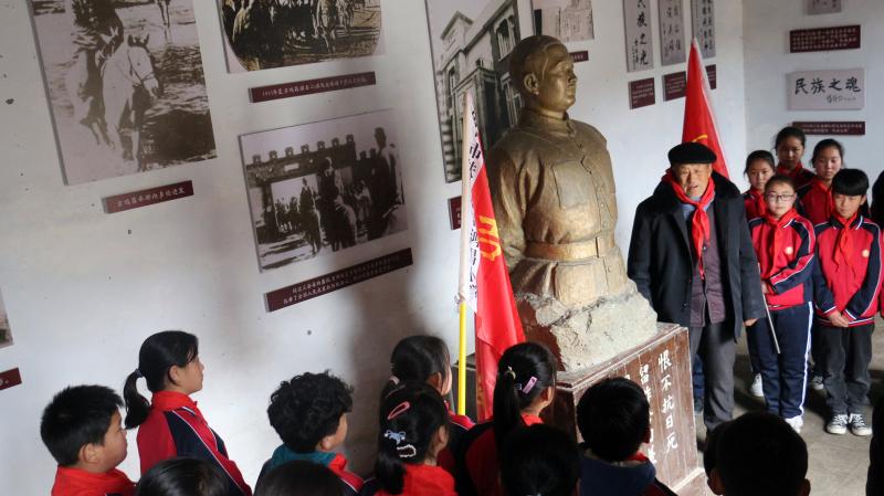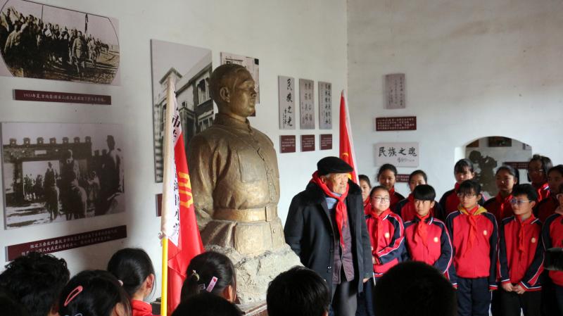 在全國上下掀起黨史學習教育熱潮之際,近日,來自吉鴻昌小學六(1)班的30名孩子,在學校少先隊輔導員的帶領下來到呂潭學校舊址,開展主題為“弘揚鴻昌精神、傳承紅色基因”的主題隊會活動,參觀了吉鴻昌學校和吉鴻昌故居,循著英雄的足跡,親身感受吉鴻昌精神的內涵,接受一場紅色的精神洗禮。期間,在吉鴻昌將軍塑像前,何國志老人生動地講解了吉鴻昌將軍親手斃堂侄、創(chuàng)辦吉鴻昌學校、首次向中國人介紹電視等身前事跡,在場的孩子感動得熱淚盈眶。 “聽了何爺爺?shù)闹v述,我被吉鴻昌將軍的事跡深深感動,長大后也要成為一名像他一樣的人!”張晨曦同學說。