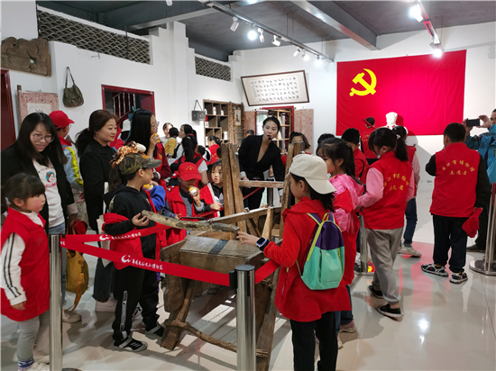 孩子們?cè)谌A威紅色文化展覽館參觀