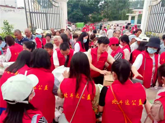 不一會兒,在志愿者組織下,來到現(xiàn)場的老人們便依次排隊領(lǐng)取了物品,滿臉充滿笑容?!懊看温犝f北斗達的孩子們過來給我們包餃子吃,我都高興得一宿睡不著覺。得知今天孩子們給我們送餃子和粽子吃,我就起了個大早,別提心里多高興了?!?5歲村民李大爺手提著領(lǐng)到的水餃和粽子高興地對記者說。