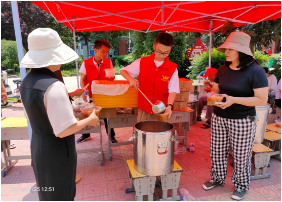 為給他們降暑解乏,加油鼓勁,連日來,西華縣箕子臺婦聯(lián)組織轄區(qū)20余名婦女和自愿者,自發(fā)熬制了600桶綠豆粥,送到西華三高賈魯河大橋防汛點,把一杯杯暖暖的綠豆粥送到一線抗洪搶險人員的手中。③8