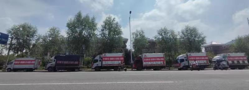 23日凌晨,車隊抵達鄭州,按接頭人的安排,在指點的地點,卸下300箱營養(yǎng)快線、300箱碗面和300箱礦泉水,按預(yù)定計劃去西華運送物資。抵達西華已是中午,匆匆卸掉600多箱物資,就急忙趕到周口中心城區(qū)和鹿邑武裝部,與赴周救援的民兵隊伍匯合。這次在周口中心城區(qū)連卸貨的時間都沒有,也不留個司機,就把一輛車連車帶貨都留給了民兵,李武漢帶著人馬驅(qū)著四輛車就往鶴壁而來。