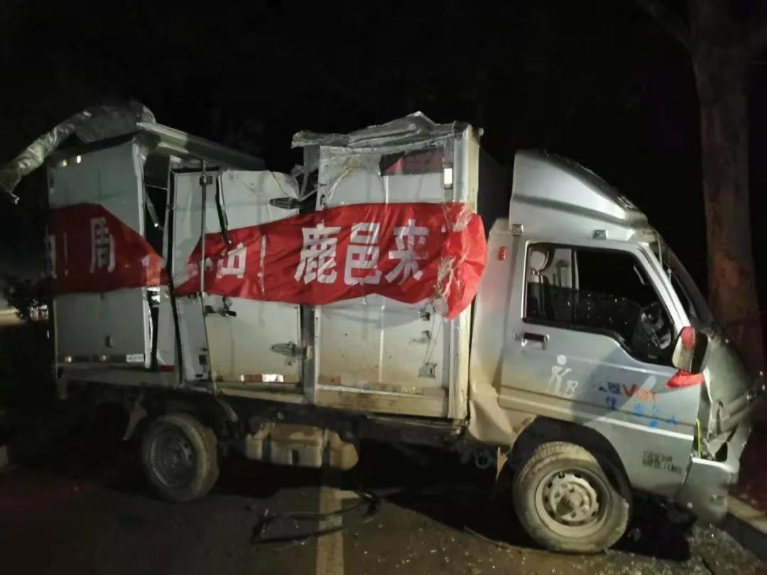 “拉一車營養(yǎng)快線,太重,拐彎撞到樹上翻車了,樹沒事車報廢了,人沒死算是幸運。他還算輕的,還有一個隊員脖子被玻璃扎了,胳膊也抬不起來了?!?/p>