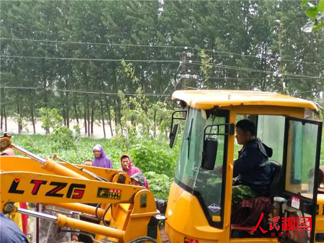 雨越下越大,衛(wèi)河水位持續(xù)上漲,永康段因前期澆地破開(kāi)的口由于水流量過(guò)大,出現(xiàn)缺口,群眾的生命財(cái)產(chǎn)安全受到了威脅,河上巡邏的村干部發(fā)現(xiàn)衛(wèi)河一處排污口不斷往外涌水,立即報(bào)告給張乾書記,此時(shí),張乾家中剛做好午飯,張書記把碗往桌上一放,還沒(méi)來(lái)得及吃一口,穿著雨衣就沖出門外,趕到現(xiàn)場(chǎng),看到情況十分緊急,千鈞一發(fā)之際,他不顧危險(xiǎn),大喊一聲“我來(lái)!大家把沙袋遞給我!”縱身跳入湍流的河中,只見(jiàn)他佝僂起身體,降低重心,以防被急流沖倒,一邊等著岸上接力過(guò)來(lái)的沙袋,在他抬頭等著接沙袋的時(shí)候,雨水打得他的眼睛都睜不開(kāi),他瞇著眼睛將一袋袋沙袋壘到衛(wèi)河封堵口,成功封堵缺口。經(jīng)過(guò)一夜的努力,和此時(shí),已經(jīng)夜里四點(diǎn)鐘,張書記全身濕透,雙腿被冷水泡得瑟瑟發(fā)抖,剛被人拉上岸,又有人來(lái)說(shuō)共產(chǎn)主義渠永康段又出現(xiàn)決堤。張乾書記二話沒(méi)說(shuō),又號(hào)召村上幾十人,立即趕到現(xiàn)場(chǎng),指導(dǎo)防汛人員進(jìn)行搶險(xiǎn)?!跋韧跍?,趕緊把水排掉,如果大堤經(jīng)過(guò)長(zhǎng)時(shí)間的浸泡,極容易形成塌方?!弊屑?xì)觀察險(xiǎn)情后,張乾趕緊吩咐道。為了填大堤,他親自開(kāi)著鏟車填放沙袋,但是由于大堤被水沖垮,已經(jīng)承受不住鏟車的重量,此時(shí),他反應(yīng)迅速,趕緊倒車返回岸上,幸好沒(méi)有掉入河中,隨即又發(fā)動(dòng)村內(nèi)群眾開(kāi)來(lái)自家的兩輪、三輪車?yán)^續(xù)王河堤上面運(yùn)送沙袋,但是由于水流量太大,杯水車薪,又聯(lián)系鎮(zhèn)上的領(lǐng)導(dǎo),協(xié)調(diào)了周邊村莊的黨員群眾一起,經(jīng)過(guò)連夜奮戰(zhàn),終于將決堤處堵住。