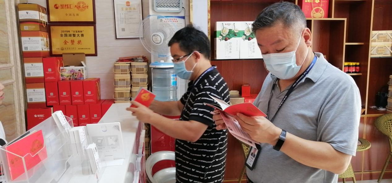 期間,共檢查了8家經(jīng)營(yíng)單位。發(fā)現(xiàn)一家水產(chǎn)品經(jīng)營(yíng)者涉嫌利用蟹卡說明書、獎(jiǎng)牌等進(jìn)行夸大宣傳;一家商超涉嫌利用酒包裝盒及標(biāo)簽標(biāo)示誤導(dǎo)消費(fèi)者。執(zhí)法人員現(xiàn)場(chǎng)進(jìn)行了筆錄,并下達(dá)詢問通知書,要求其提供相關(guān)證明材料接受詢問調(diào)查。