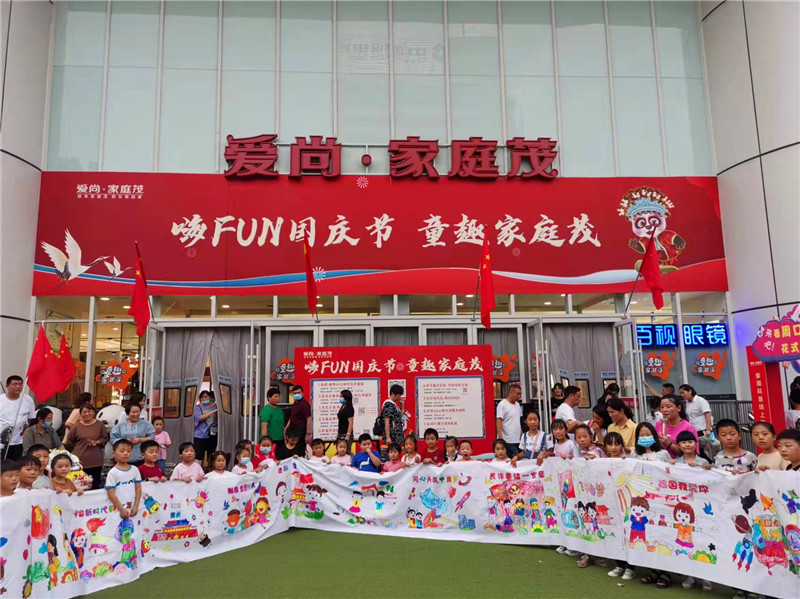 當(dāng)日,由該商超舉辦的“慶國慶·百米長卷畫中國"活動(如圖),受到小朋友們的歡迎。