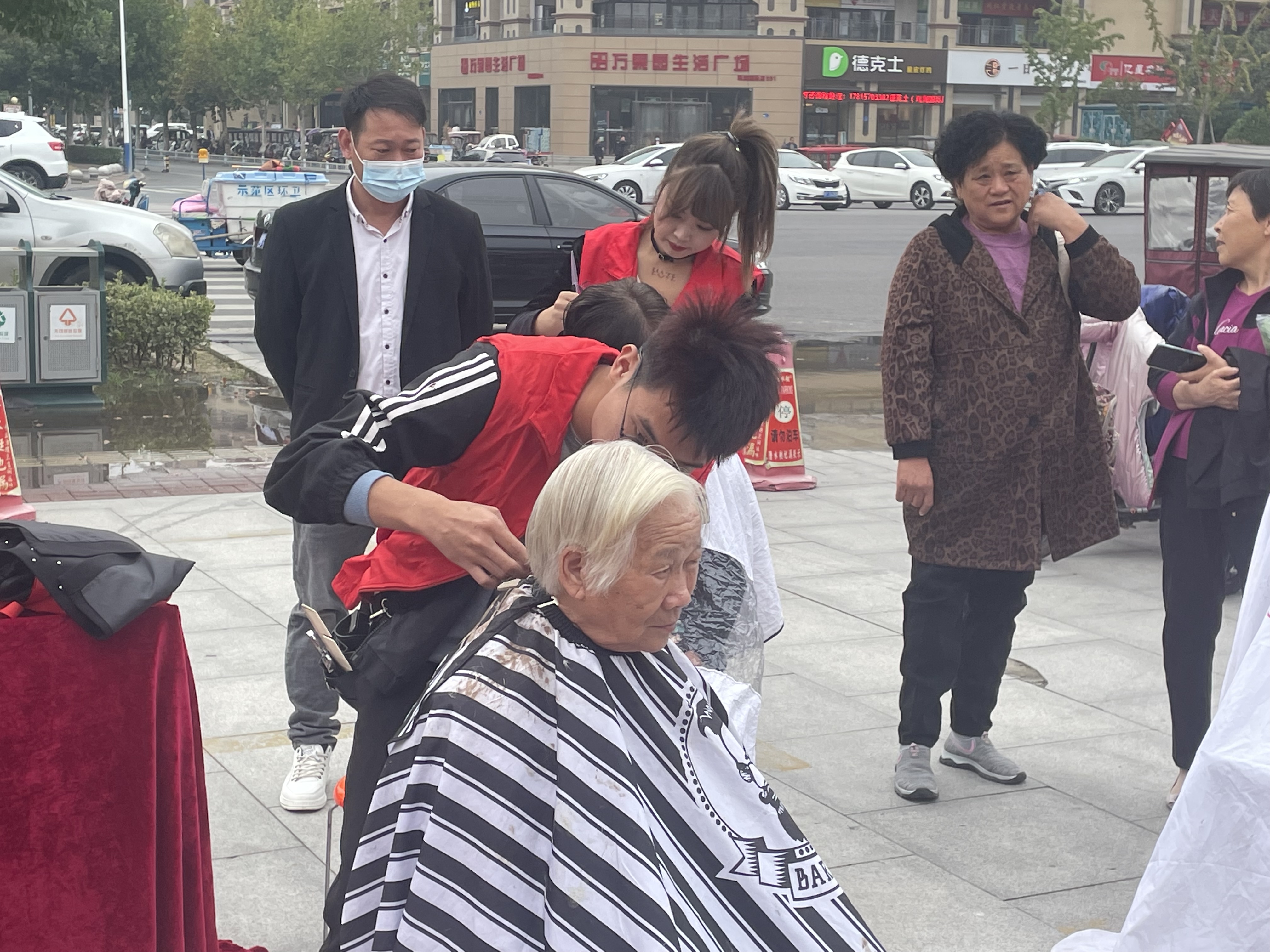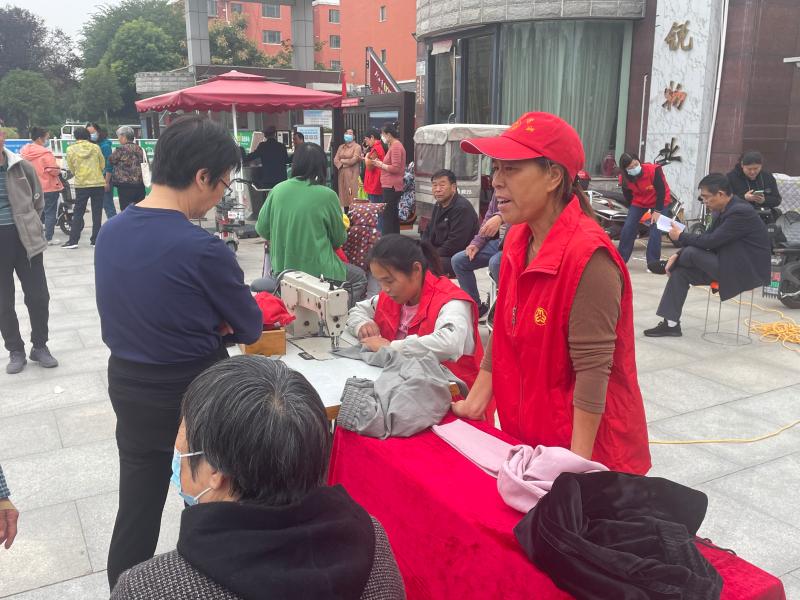 10月14日,在川匯區(qū)文昌大道的中原社區(qū)A區(qū)大門口,數(shù)十名身穿紅馬甲的志愿者在忙著幫社區(qū)老年人截褲腳、剪頭發(fā)、補(bǔ)鞋子。志愿者們深入社區(qū),為老年人服務(wù)。此外,他們還在蓮花路、太昊路、文明路、交通路街頭值勤,助力文明周口建設(shè)。①5