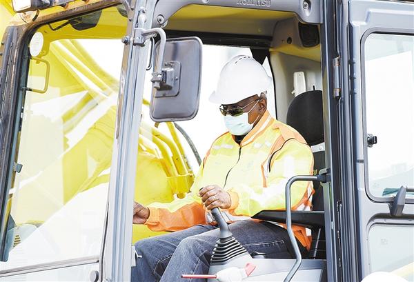 10月21日,博茨瓦納總統(tǒng)馬西西在拉莫茨瓦舉行的洛巴策供水管線項目開工儀式上操作挖掘機。