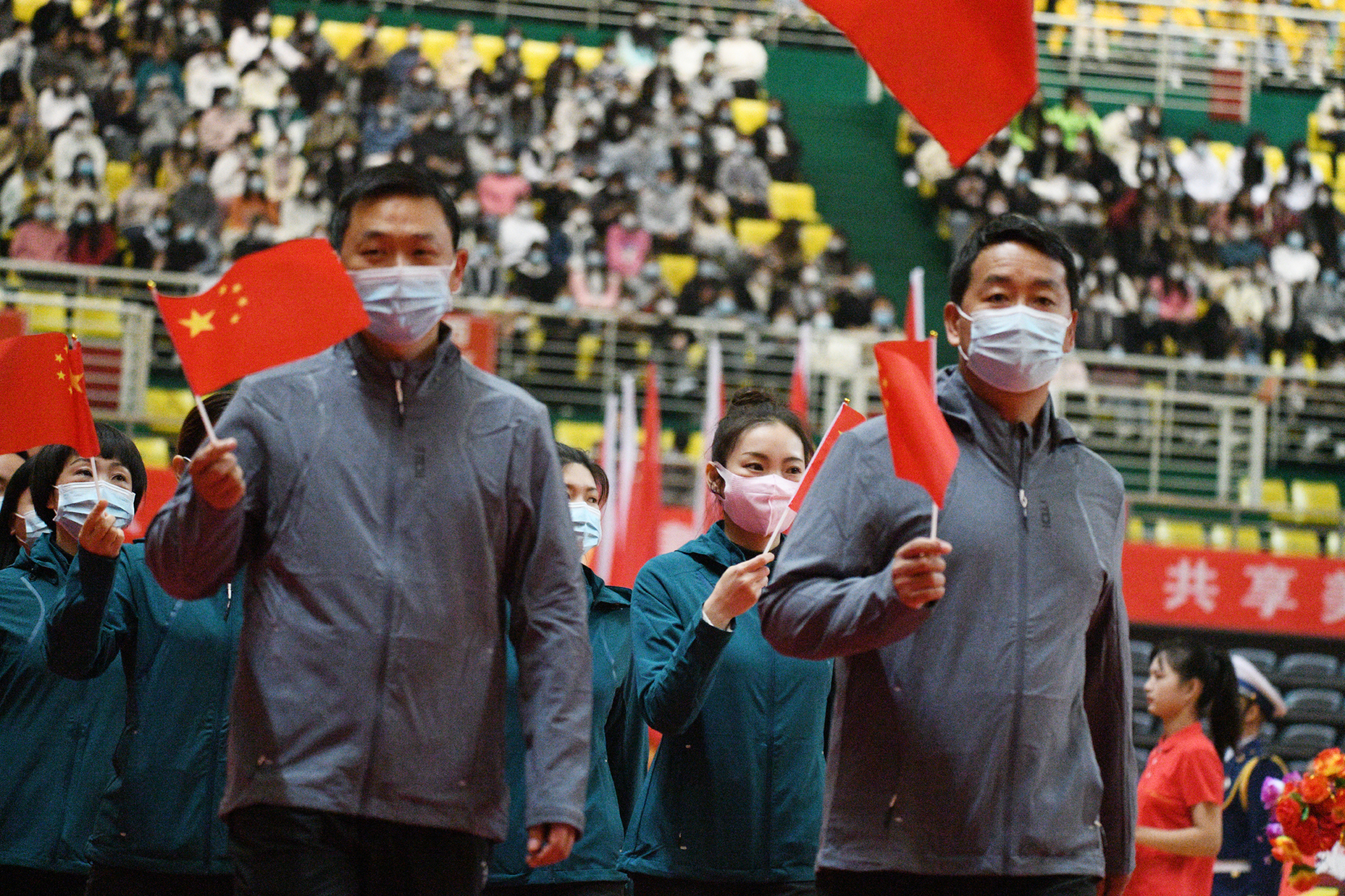 女運(yùn)動員們展示巾幗不讓須眉的奮進(jìn)精神