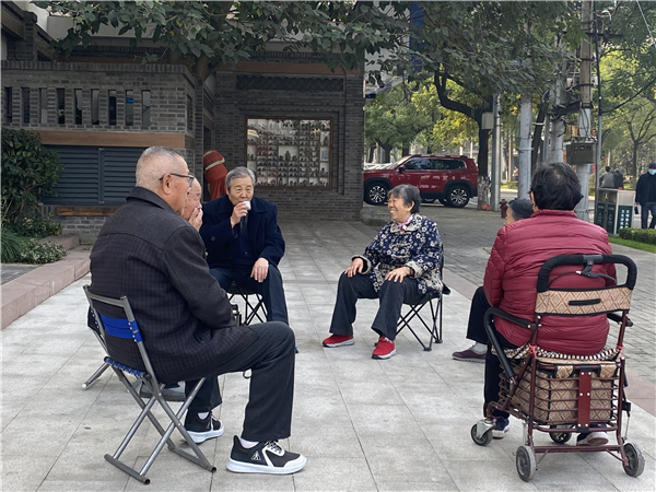 老人在老街里聊天