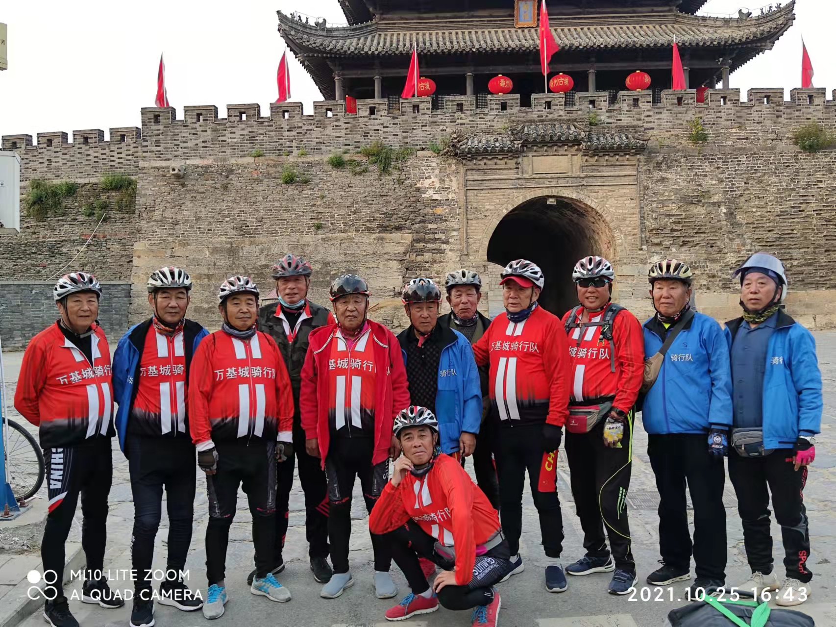 周口“馬扎子”老年騎行隊在壽縣古城門