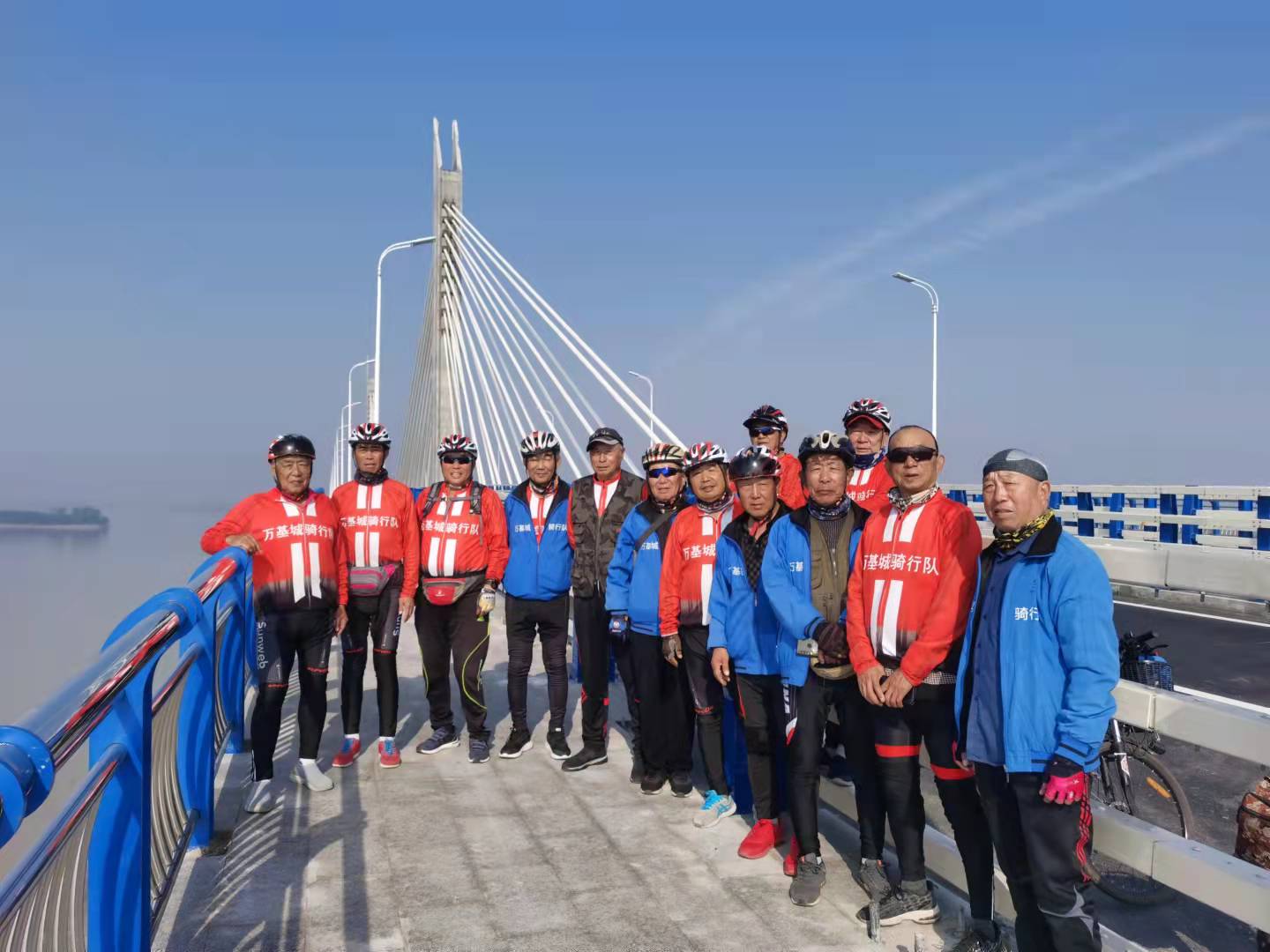 周口“馬扎子”老年騎行隊在瓦埠湖大橋