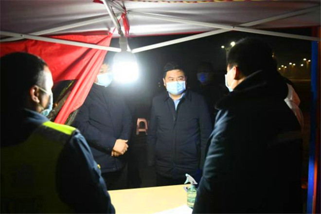 1月3日晚,鹿邑縣委書記李剛,縣委副書記、縣長郭俊濤帶領(lǐng)縣委辦、衛(wèi)健委、公安局、督查局、交通局等部門負(fù)責(zé)同志先后到鹽洛高速鹿邑西站、老子故里站疫情防控卡點(diǎn),實(shí)地檢查指導(dǎo)疫情防控工作??h委常委、統(tǒng)戰(zhàn)部部長史凱歌,副縣長翟杰,縣政府領(lǐng)導(dǎo)成員谷長征一同檢查。③2