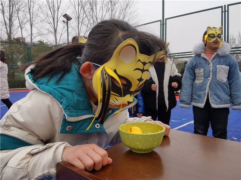 活動(dòng)現(xiàn)場(chǎng),一條條燈謎掛在繩上供大家思考,猜出謎底的“虎娃”開(kāi)心地把燈謎撕下來(lái)找工作人員兌換獎(jiǎng)品,玩得不亦樂(lè)乎。同時(shí),元宵節(jié)的傳統(tǒng)食物元宵也出現(xiàn)在活動(dòng)中,社工、志愿者設(shè)置的團(tuán)團(tuán)圓圓(歡樂(lè)夾元宵)游戲,用乒乓球代替元宵,讓“虎娃”們進(jìn)行大比拼,大家從剛開(kāi)始的不熟悉變?yōu)楹髞?lái)越來(lái)越默契,現(xiàn)場(chǎng)其樂(lè)融融。隨后,聲聲報(bào)福(踩氣球)游戲?qū)⒒顒?dòng)推向高潮。