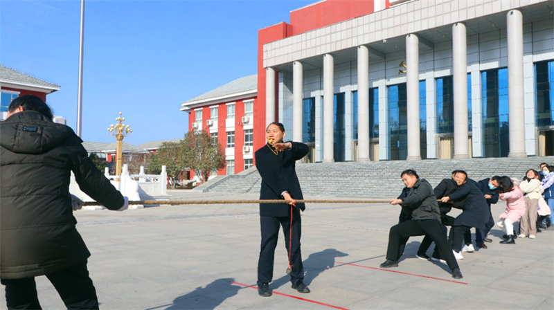 在拔河比賽中,校黨委書記、常務(wù)副校長孟慶武親自當(dāng)裁判,各支部代表隊都派出最強(qiáng)陣容,齊心協(xié)力,勇爭第一。隨著裁判的一聲哨響,比賽正式開始,各位參賽隊員雙手緊握長繩,壓低重心、咬緊牙關(guān),鉚足勁拼命往后拉。比賽過程中,參賽隊員心往一處想,力往一處使,齊心協(xié)力、勇往直前,用汗水詮釋了永不放棄、永不氣餒的拼搏和團(tuán)隊精神,激發(fā)了攜手奮進(jìn)、勇爭一流的熱情。
