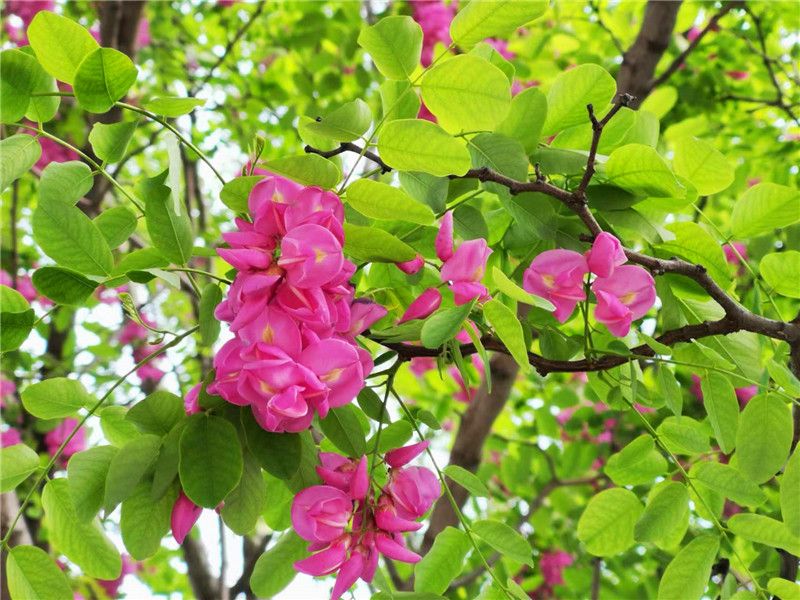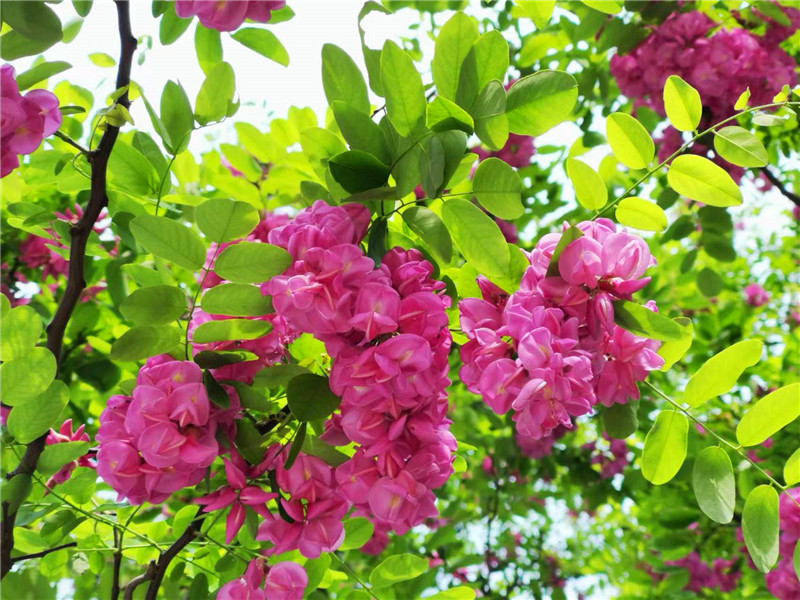 “槐林五月漾瓊花,郁郁芬芳醉萬家?!毖巯?,在周口濱河公園,紅色的槐花怒放,芳香四溢,惹人心醉。陽光下,一串串、一簇簇、一樹樹槐花隨風(fēng)搖曳,美不勝收。周口日報·周道客戶端記者 普淑娟 攝