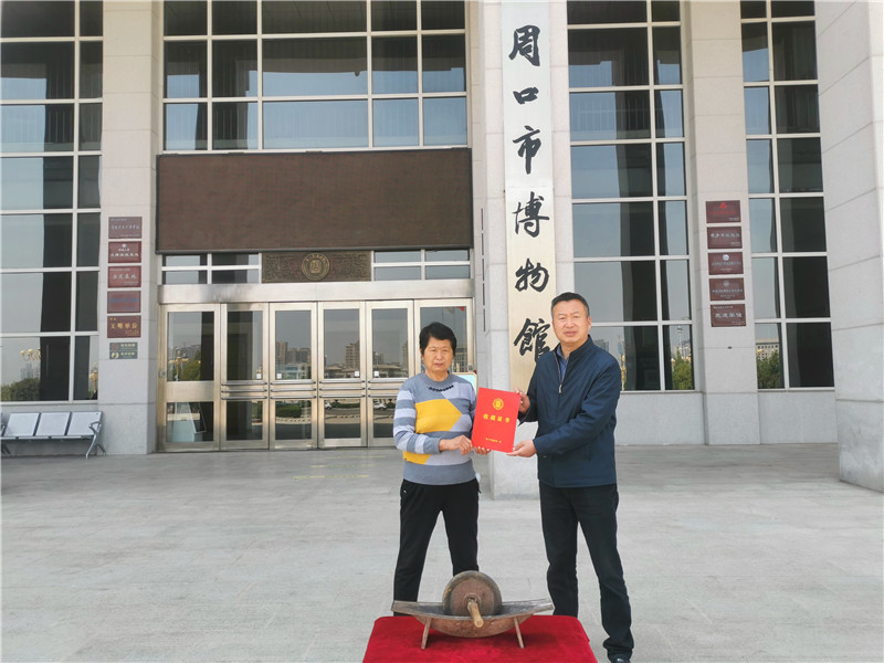 市博物館館長(zhǎng)周建山向葉桂蓮頒發(fā)收藏證書(shū)