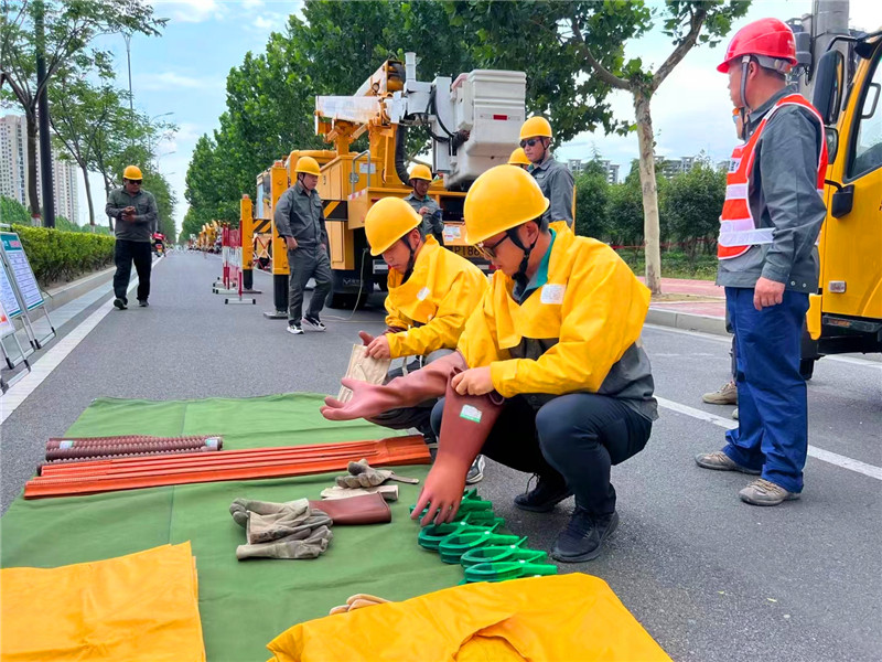 當(dāng)日下午,在中心城區(qū)武盛大道南段,國(guó)網(wǎng)周口供電公司工作人員嚴(yán)格按照標(biāo)準(zhǔn)化作業(yè)流程,穿戴絕緣服、絕緣安全帽、絕緣手套等防護(hù)安全工器具,在黃色絕緣斗臂車(chē)“長(zhǎng)臂”的助力下于高空中有序進(jìn)行施工。