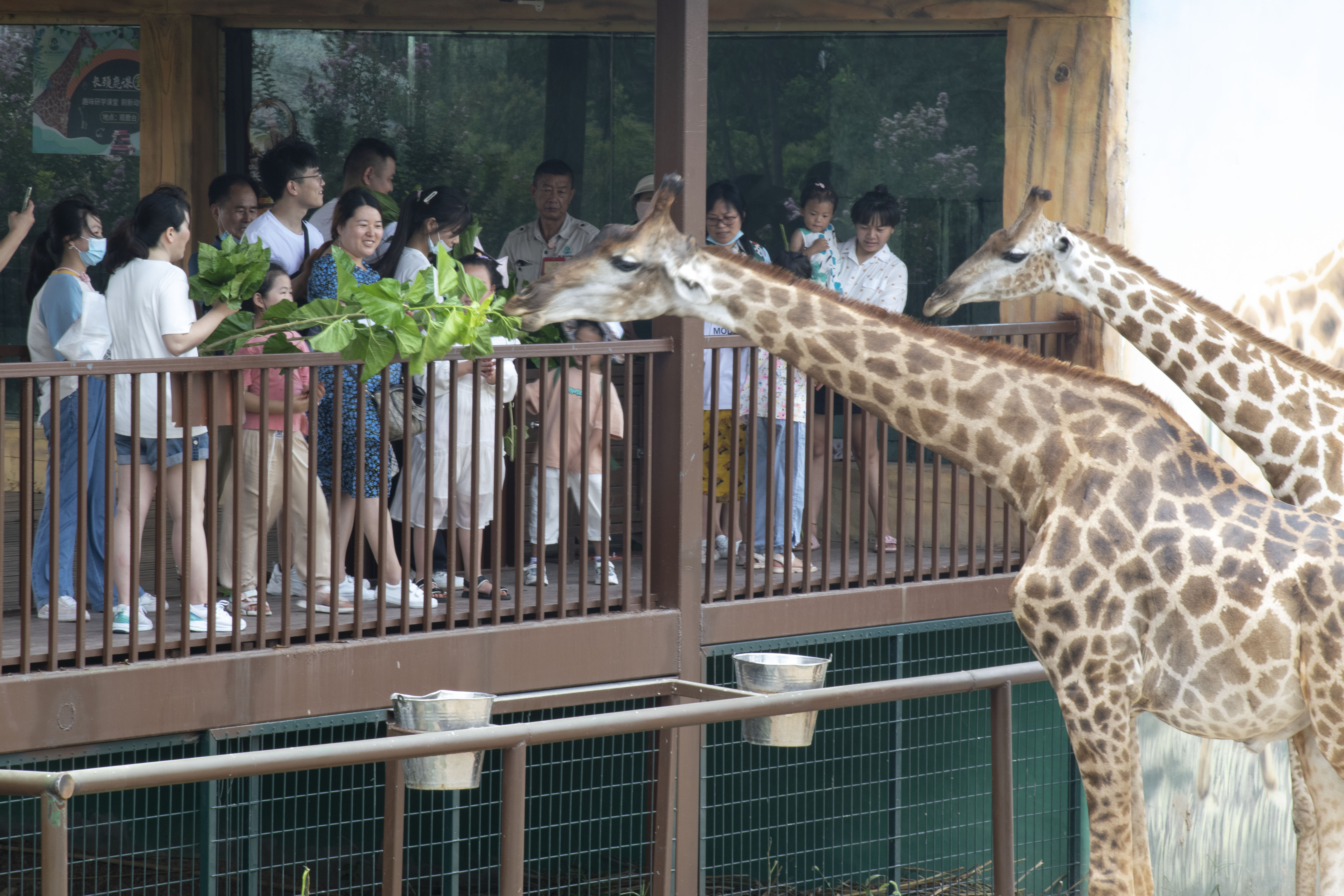 中午,在觀鹿餐廳,與長頸鹿共進午餐,在你享用西餐美食時,可以投喂它們一把樹葉,人鹿相望、相近、相親。