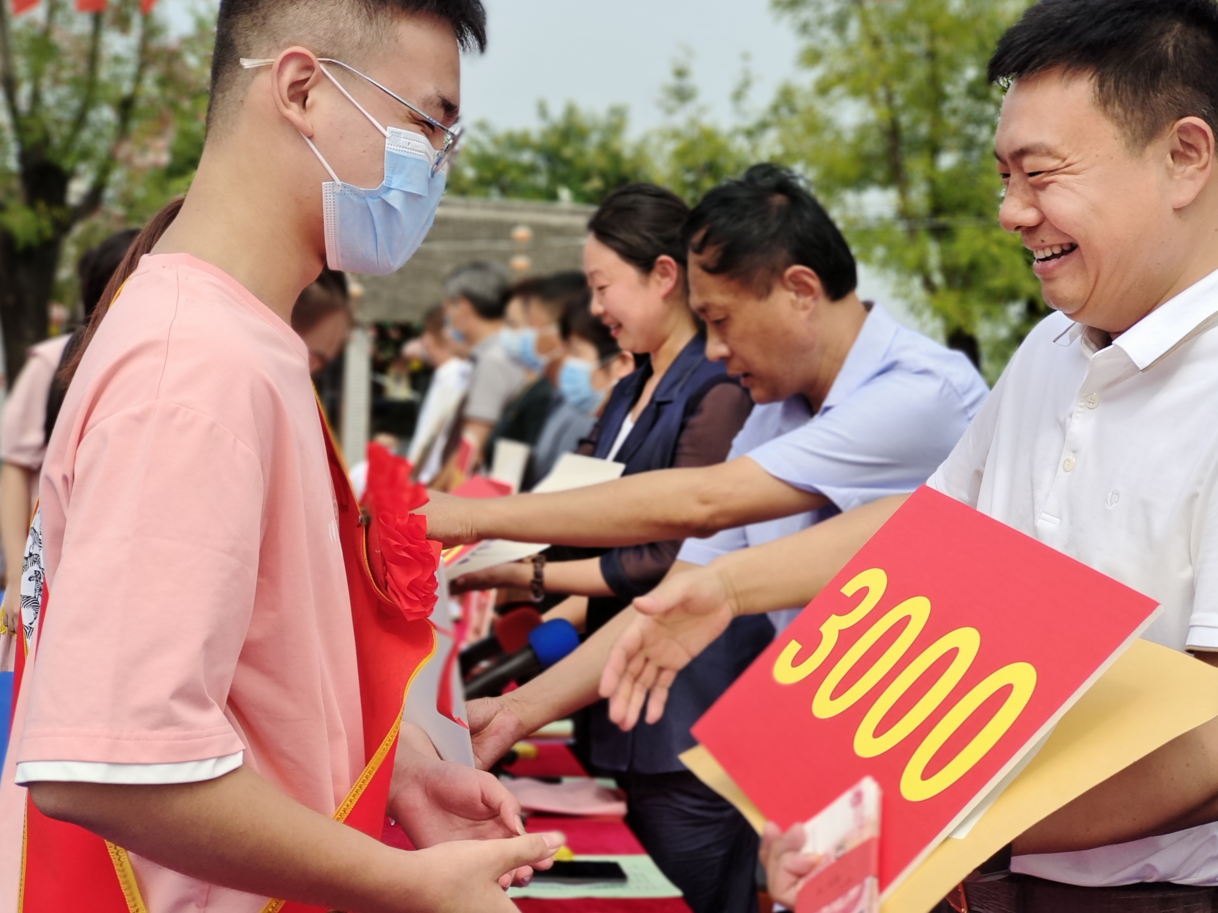圖片說明:8月20日上午,太康縣老冢鎮(zhèn)2022年“山果”助學(xué)行動(dòng)暨慶祝第38個(gè)教師節(jié)表彰大會(huì)在老冢鎮(zhèn)劉寨印象舉行,對(duì)9個(gè)尊師重教先進(jìn)行政村、8個(gè)教育工作先進(jìn)單位、63名優(yōu)秀教師、100名優(yōu)秀中小學(xué)生、1名2022年考入北京大學(xué)的研究生,及17名被雙一流高校錄取的大一新生進(jìn)行了表彰,共發(fā)放獎(jiǎng)學(xué)獎(jiǎng)教資金10.36萬元,詠絮書畫院向獲獎(jiǎng)學(xué)生贈(zèng)送了書畫作品。會(huì)前,與會(huì)人員共同觀看了文藝匯演和《美麗鄉(xiāng)村看老冢》紀(jì)錄短片。