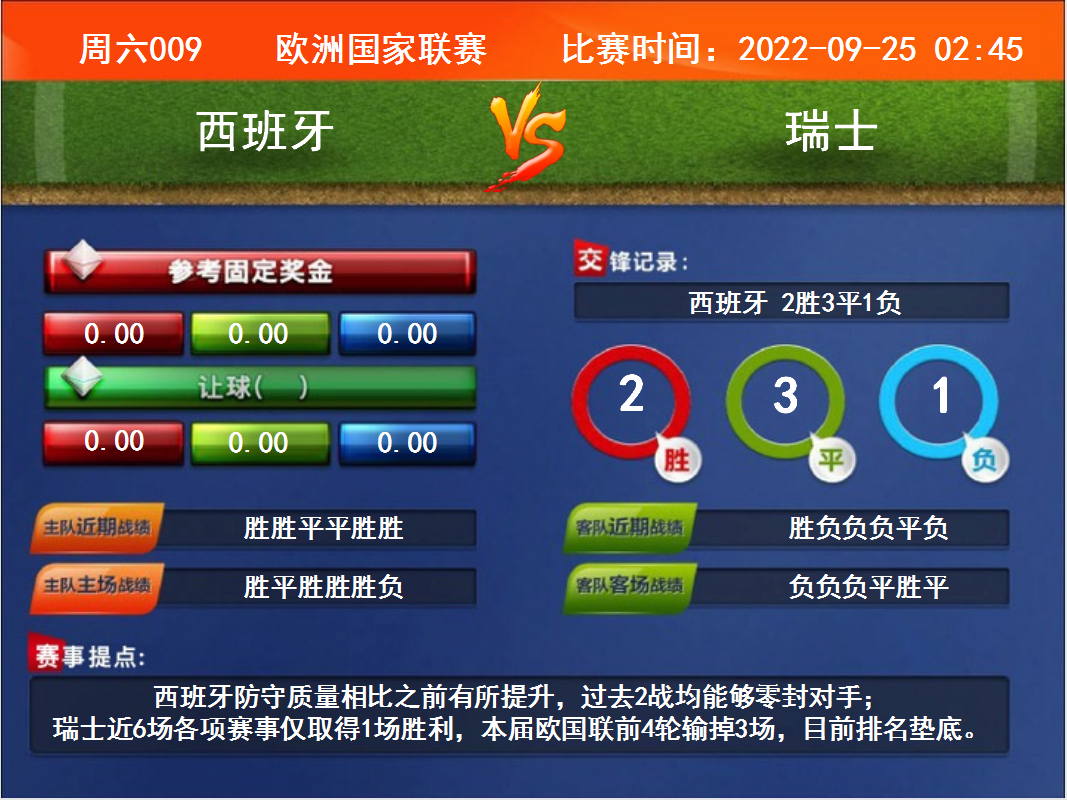 周六009 歐洲國(guó)家聯(lián)賽 西班牙VS瑞士