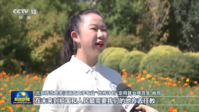 北京師范大學(xué)漢語(yǔ)言文學(xué)專(zhuān)業(yè)“優(yōu)師計(jì)劃”定向就業(yè)師范生 肖珂:總書(shū)記勉勵(lì)我們?cè)鲩L(zhǎng)傳道授業(yè)解惑本領(lǐng),在未來(lái)到祖國(guó)和人民最需要我們的地方去任教。我定不負(fù)囑托,努力學(xué)習(xí),在畢業(yè)后回到我的家鄉(xiāng)。