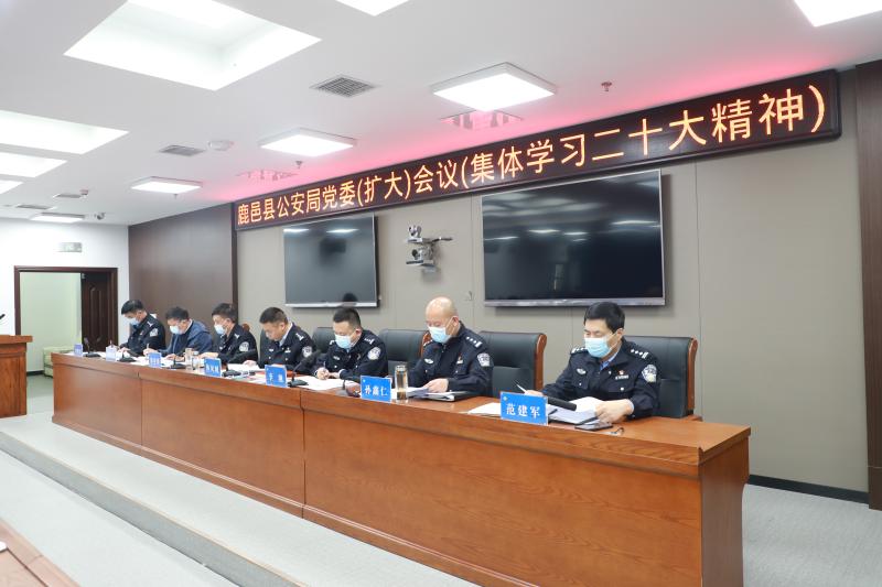 11月3日下午,鹿邑縣公安局組織召開黨委(擴大)會議,對黨的二十大、二十屆一中全會精神進行專題學習。鹿邑縣副縣長、公安局黨委書記、局長韓鳳城主持會議,局黨委班子成員,各科所隊室負責人、刑警各中隊負責人參加會議。