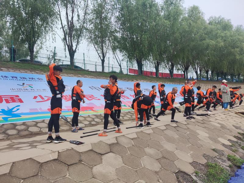 當(dāng)日上午,氣溫微涼。在沙潁河水上運(yùn)動中心,醫(yī)護(hù)人員、救援人員、志愿者等工作人員早早到崗,為賽事的順利進(jìn)行做好了充足的準(zhǔn)備。運(yùn)動員們身穿救生衣,正在岸邊熱身,等待入場比賽。