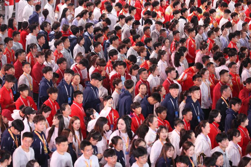 閉幕式上,來自全省各地的運(yùn)動(dòng)員用手機(jī)記錄下精彩瞬間。記者 劉俊濤 攝