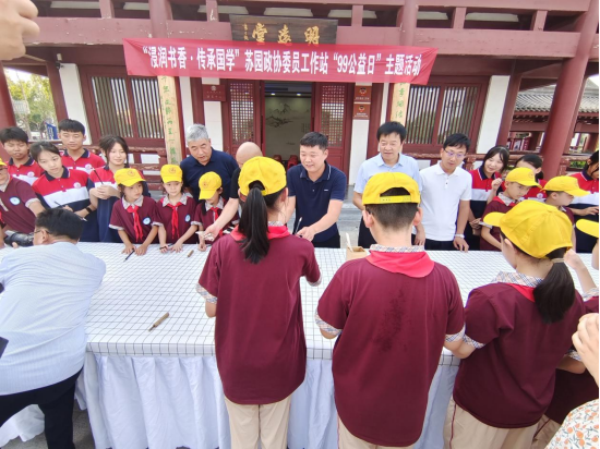 本次活動(dòng),特邀劉氏毛筆制作技藝第六十七代傳承人劉永杰現(xiàn)場(chǎng)講解和演繹毛筆的制作過程,40多名中小學(xué)生親身體驗(yàn),親手制作,更深一步了解毛筆的制作工序,讓毛筆制作技藝不斷發(fā)揚(yáng)光大,讓非遺文化不斷的傳承下去,激勵(lì)學(xué)生們寫好中國(guó)字,做好中國(guó)人。委員們和學(xué)子們?cè)诜沁z傳承人的指導(dǎo)下,共同制作“蘇園狀元筆”。