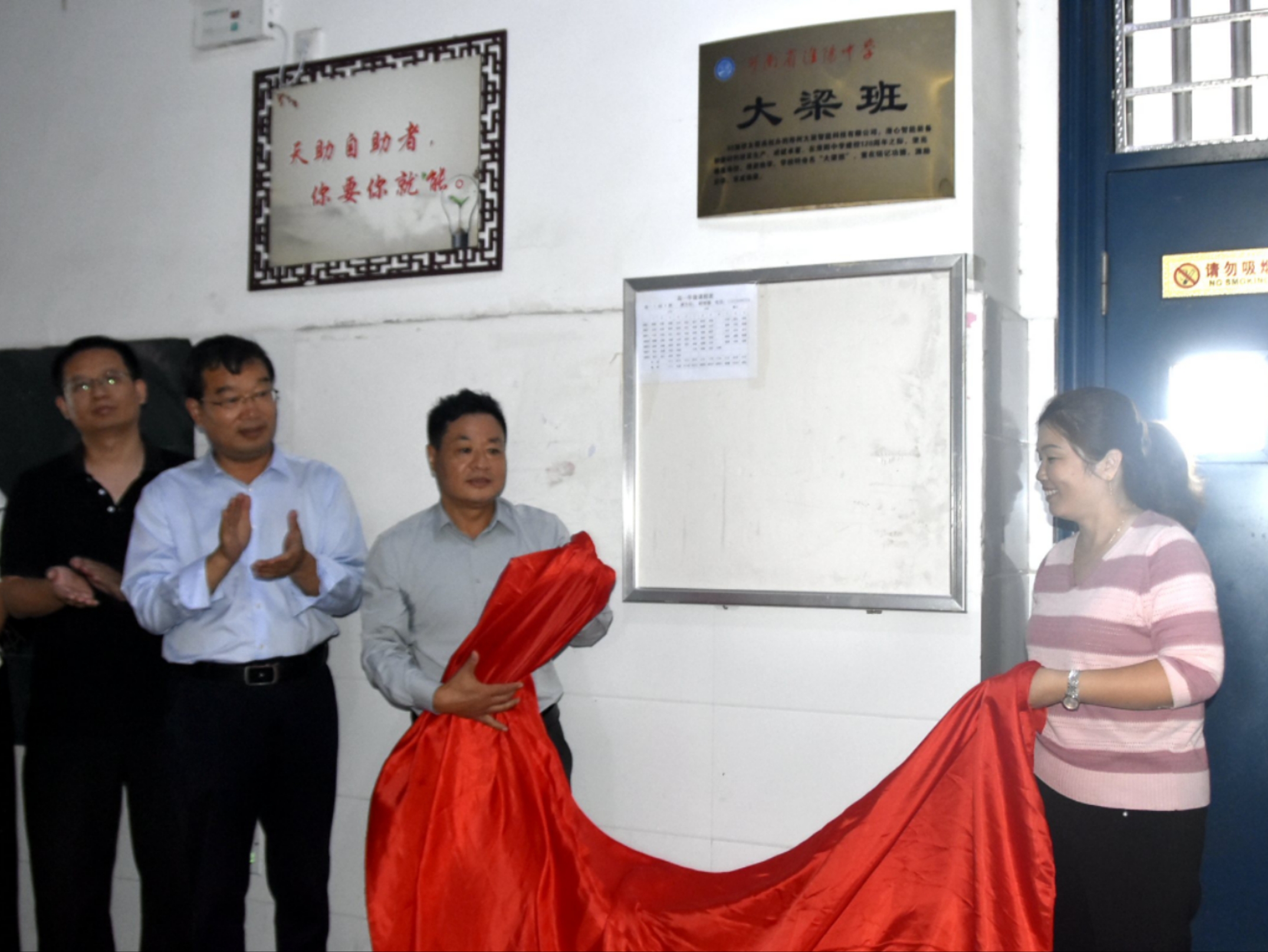 最后,梁亮和班主任程艷麗老師一起為“大梁班”揭幕,與會人員和班級全體同學見證了這一歷史時刻。