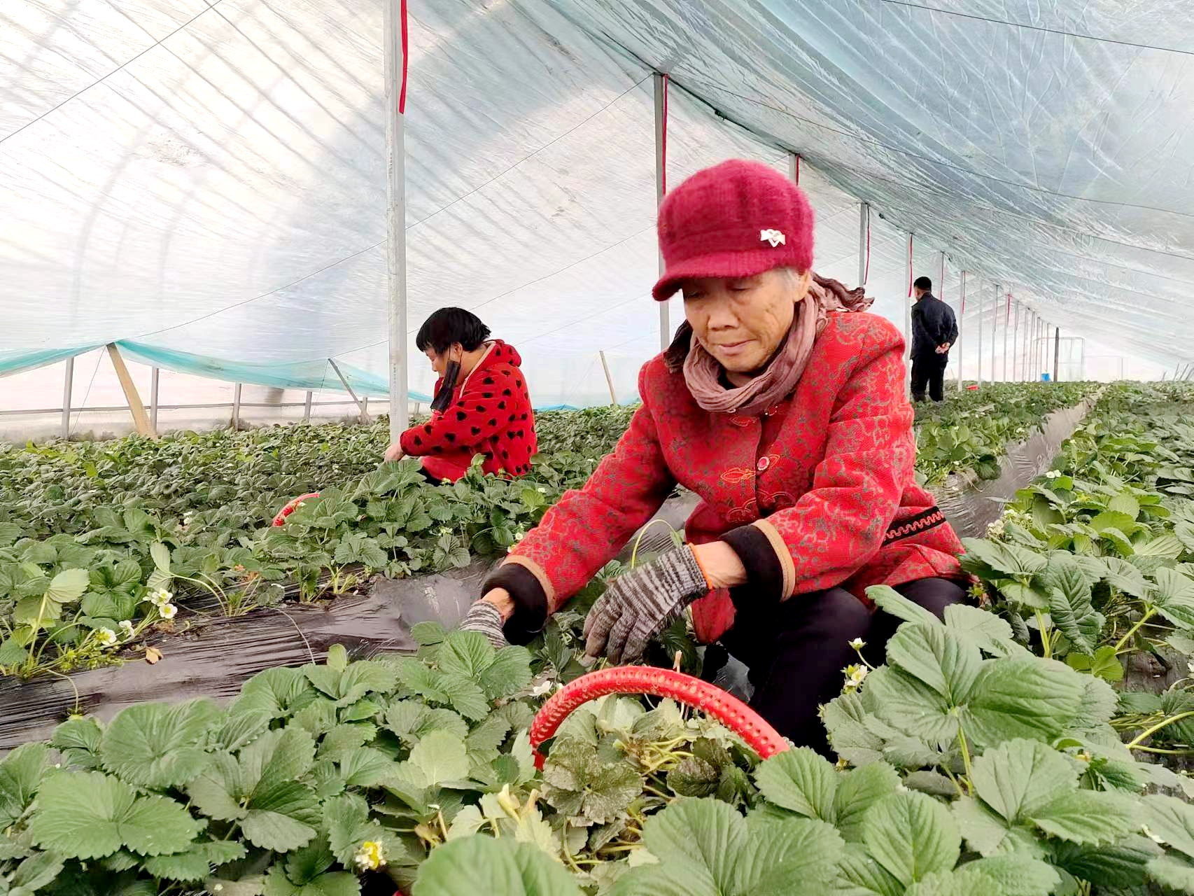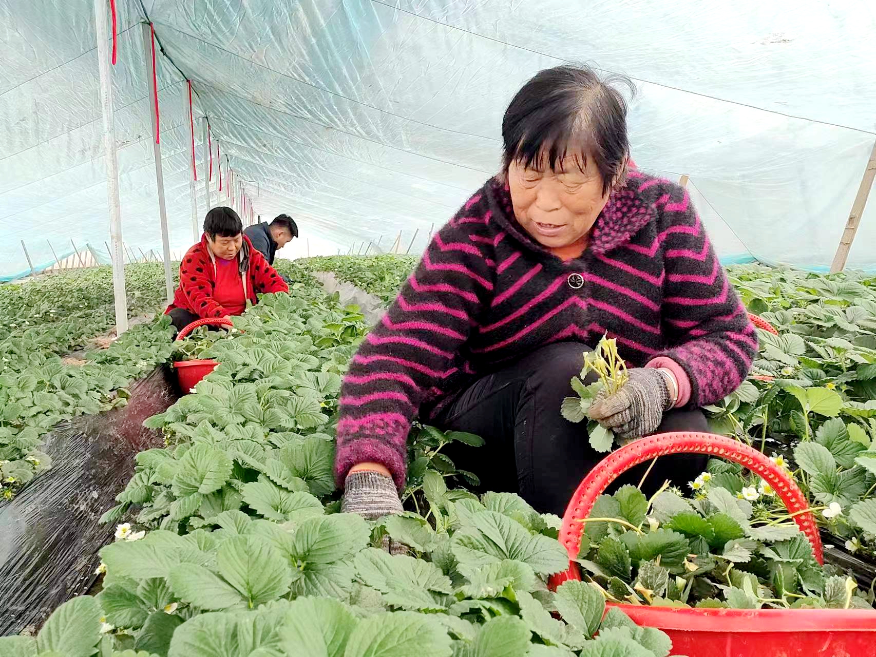 在田廣水的草莓采摘園,一股清香撲鼻而來(lái)。綠油油的草莓葉下,一顆顆鮮紅欲滴的草莓長(zhǎng)勢(shì)喜人,十分誘人。這里的20多畝草莓已經(jīng)開始結(jié)果成熟上市?!俺醵乃贩N本來(lái)很少,我們大棚種植的‘紅顏’草莓香甜、肉厚、口感好,大人孩子都很喜歡吃?!碧飶V水說,草莓園成熟季雇用工人近30人,全部來(lái)自村里的留守婦女、老人及脫貧監(jiān)測(cè)戶。
