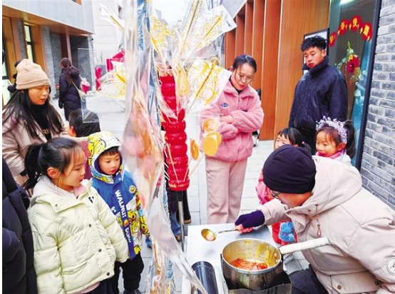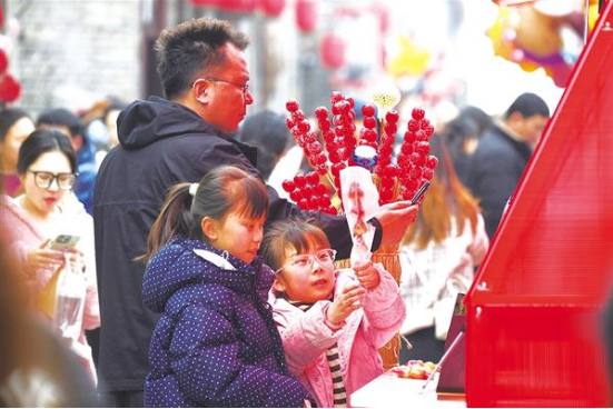 近日,周家口南寨歷史文化街區(qū)擊鼓開街,第三屆“三川十館·春會(huì)”同步啟幕。街巷深處,兩位小朋友在家長(zhǎng)陪同下挑選冰糖葫蘆,笑語盈盈。