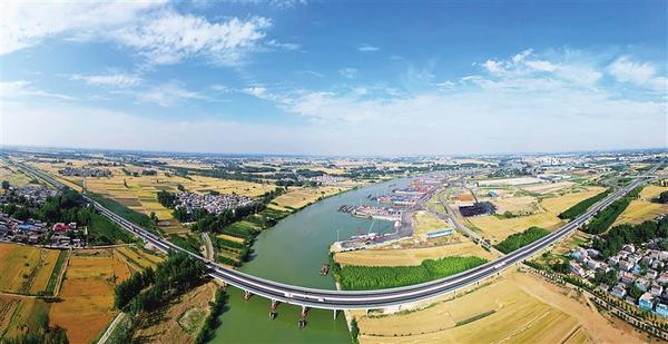 5月27日,周口港中心港區(qū)在碧水、藍天、白云、金色麥浪、秀美村莊的映襯下,顯得十分壯美。近年來,我市利用水陸交通優(yōu)勢,加快構建“鐵公機水”多式聯(lián)運體系,努力從“經濟通道”邁向“通道經濟”。