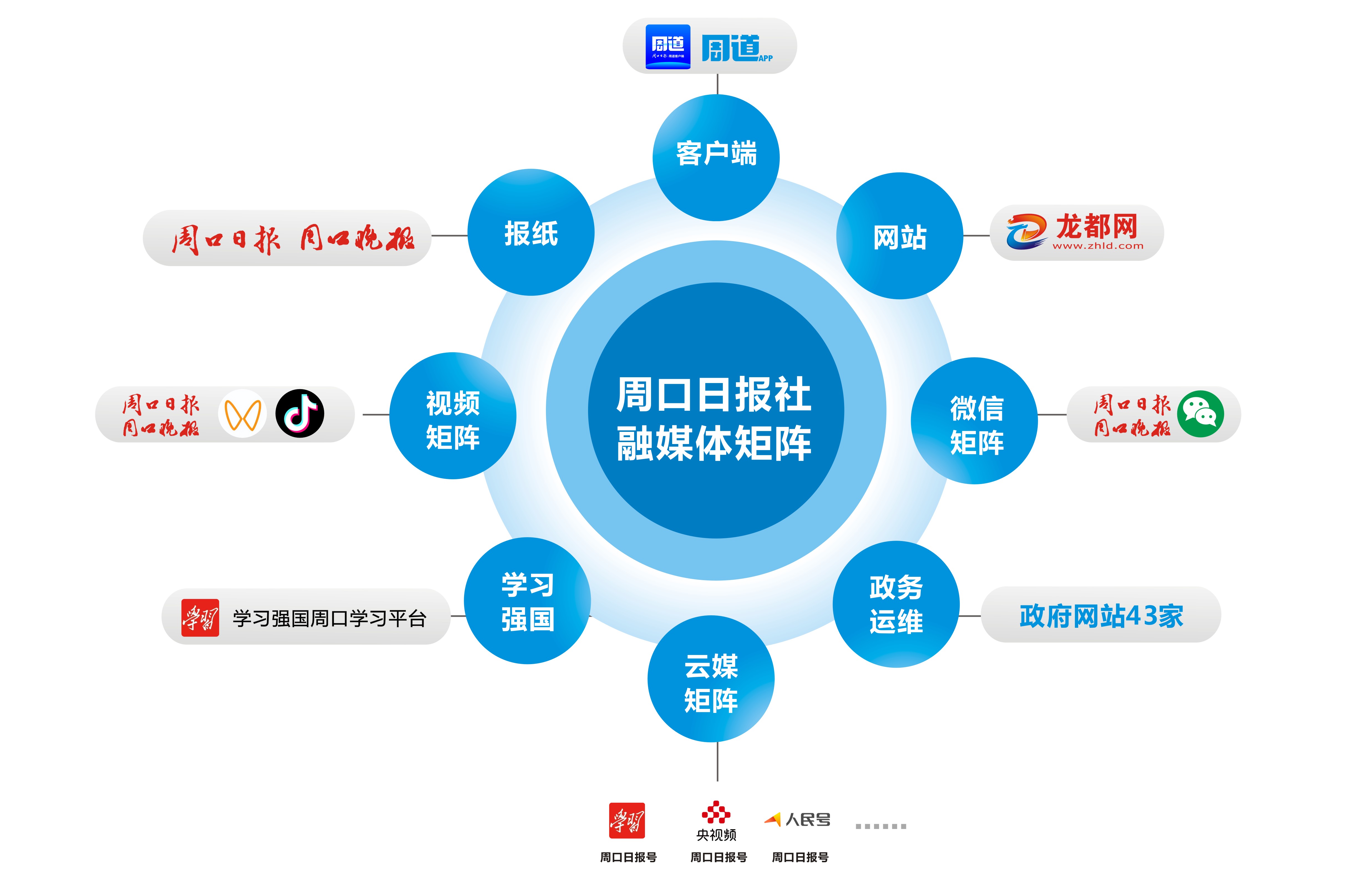 周口日報(bào)社始終堅(jiān)持“移動優(yōu)先 內(nèi)容為王 導(dǎo)向?yàn)榛?創(chuàng)新為要”的發(fā)展方向,從體制機(jī)制、隊(duì)伍建設(shè)、采編創(chuàng)新、服務(wù)優(yōu)先、經(jīng)營轉(zhuǎn)型等多方面持續(xù)發(fā)力,不斷深化媒體融合發(fā)展。已形成涵蓋《周口日報(bào)》,《周口晚報(bào)》,龍都網(wǎng),周道客戶端,官方微信號、微博號、視頻號、抖音號,學(xué)習(xí)強(qiáng)國周口學(xué)習(xí)平臺、政務(wù)運(yùn)維等12大門類18個(gè)主體的立體傳播矩陣,托管運(yùn)維政府網(wǎng)站43家,用戶總數(shù)逾千萬。對外宣傳上,周口日報(bào)社還在學(xué)習(xí)強(qiáng)國客戶端、人民日報(bào)客戶端、央視頻客戶端等多個(gè)第三方平臺開設(shè)周口日報(bào)號,組成網(wǎng)絡(luò)云媒矩陣,形成了全方位、立體化、多角度展示周口形象的全媒體傳播新格局。