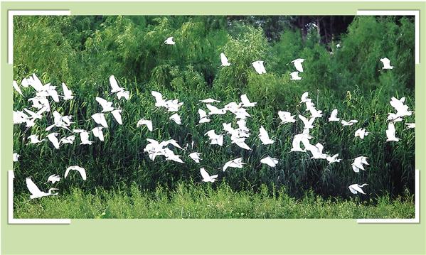 連日來,大批白鷺聚集在川匯區(qū)大慶路橋東側(cè)濕地,遠遠望去,百鳥飛翔,一派人與自然和諧共生的景象。何延成 攝