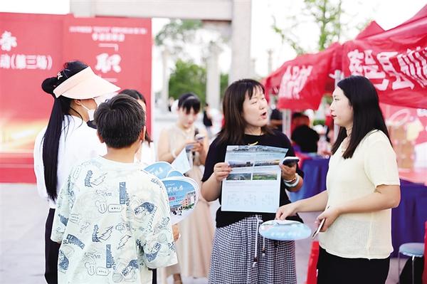 8月14日、15日,鹿邑縣人社局等單位在弘道苑廣場(chǎng)聯(lián)合舉辦“職引未來(lái) 筑夢(mèng)青春”專(zhuān)場(chǎng)招聘會(huì)。此次招聘會(huì)邀請(qǐng)28家企業(yè)參加,提供涵蓋食品加工、智能制造、電子商務(wù)、餐飲服務(wù)等領(lǐng)域優(yōu)質(zhì)就業(yè)崗位50余個(gè)。圖為招聘會(huì)現(xiàn)場(chǎng)。 記者 侯國(guó)防 通訊員 陳朝威 攝