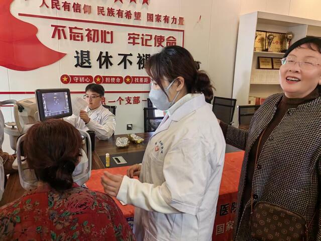 活動現(xiàn)場設(shè)置視力檢測區(qū)、眼底篩查區(qū)等功能區(qū)域,醫(yī)護人員為老同志進行全面眼部健康檢查和評估,重點篩查白內(nèi)障、青光眼等老年高發(fā)眼病,并現(xiàn)場為老同志講解有關(guān)眼健康防護知識。針對檢測中發(fā)現(xiàn)的疑似白內(nèi)障患者及其他眼疾者,醫(yī)護團隊現(xiàn)場建立健康檔案并預(yù)約復(fù)診通道,使受檢者有所醫(yī)、有所治,彰顯人文關(guān)懷。