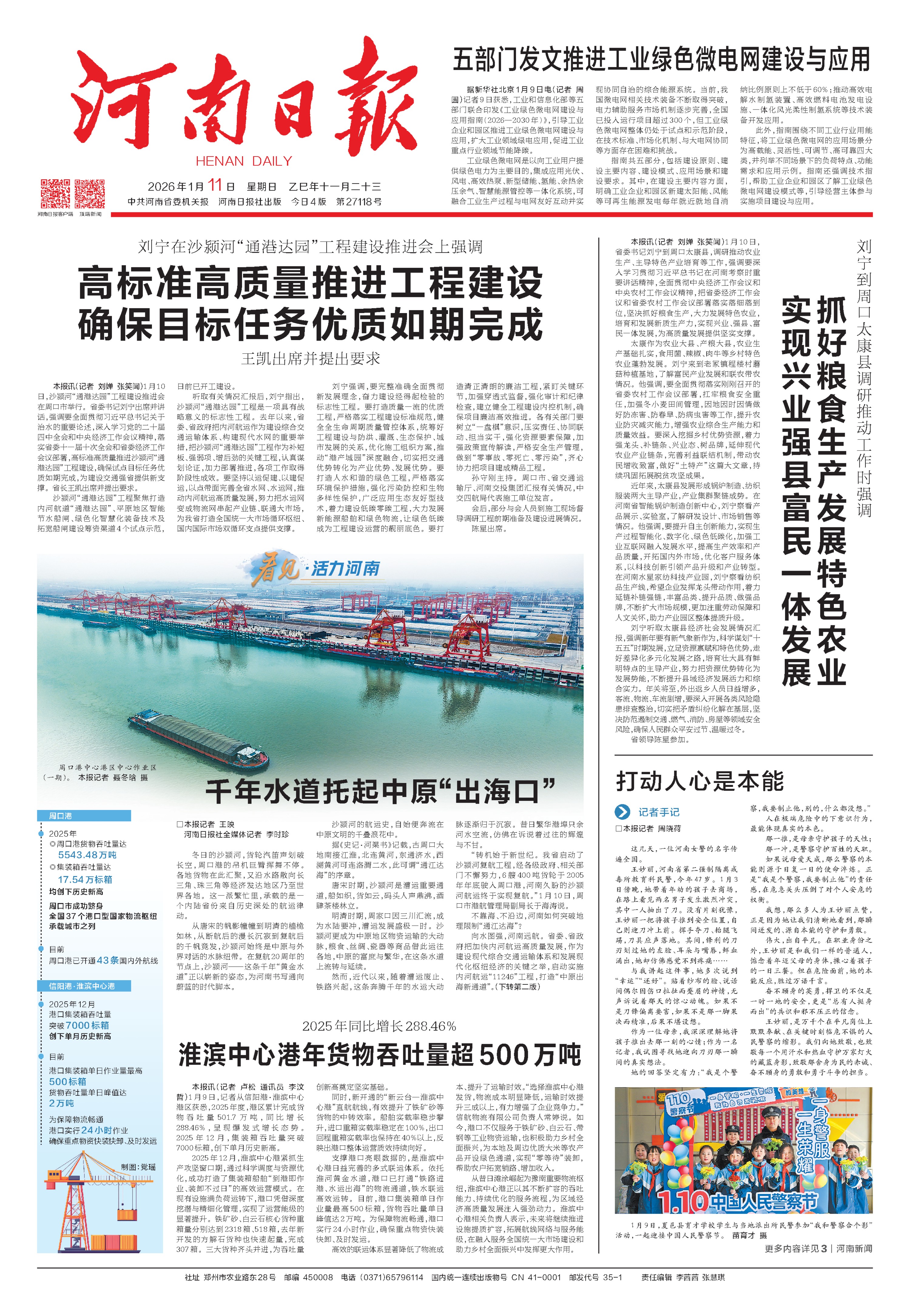 漯河港、平頂山港相繼開港運營;周口港中心港區(qū)中心作業(yè)區(qū)一期工程去年年底建成投用,標志著河南內(nèi)河集裝箱運輸邁入“百萬標箱時代”;沙潁河“通港達園”工程開工建設,進一步完善我省水運網(wǎng)絡,服務和融入新發(fā)展格局。